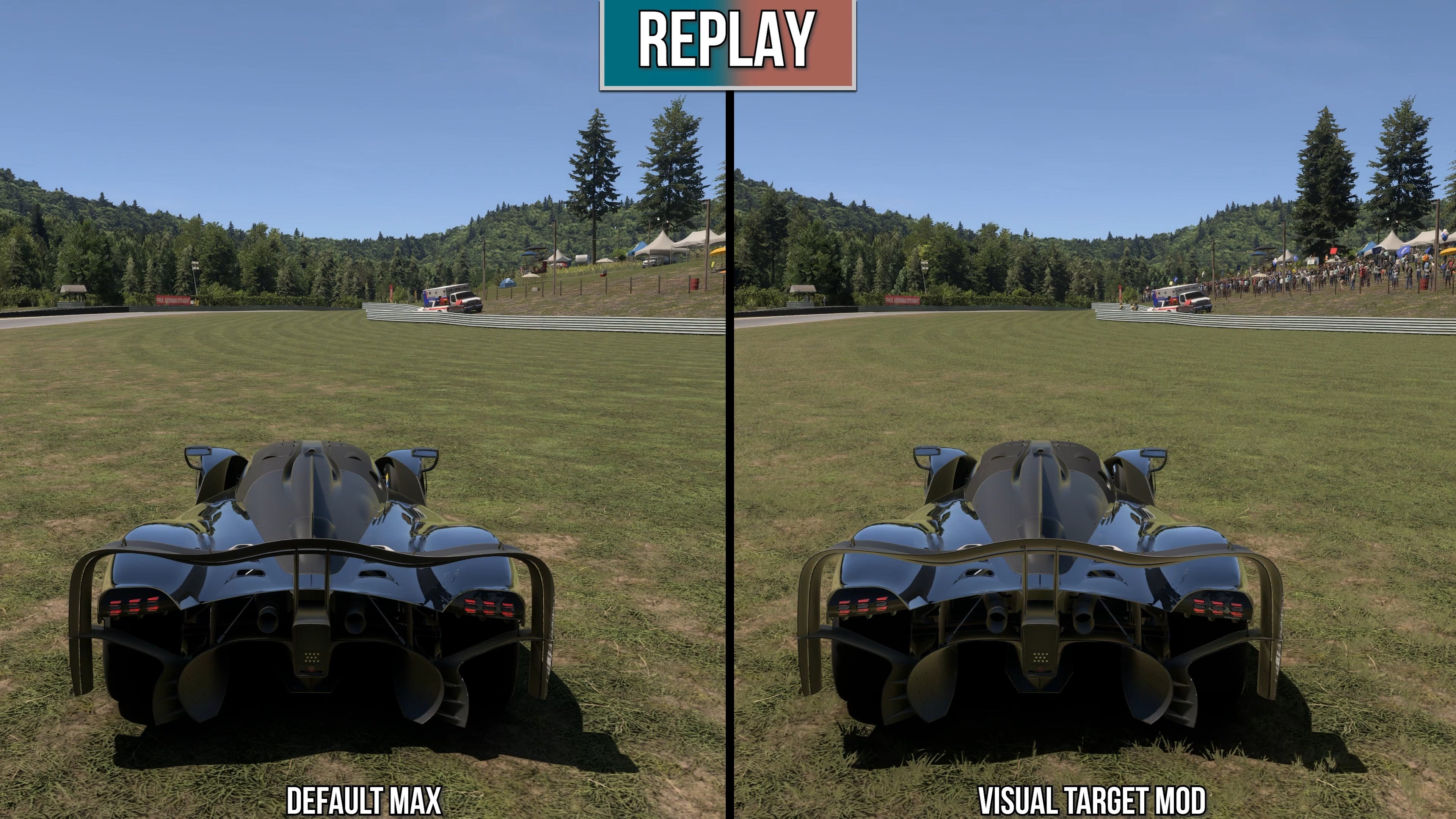 With the mod enabled, one of the first things I noticed was a general increase in level of detail, draw distance and even object density when the mod is enabled. Grass is mostly a flat texture, for example, but with the mod, thin planes of geometry are added, stretching out into the distance. Extra detail and further draw distance are present in many other aspects of the game: denser forests, more bushes, stands packed with onlookers. All things considered, the game looks more dense, holding up better at a distance with less pop-in. This alone could form the basis for an 'extreme' visual preset in the shipping game - but there is more.