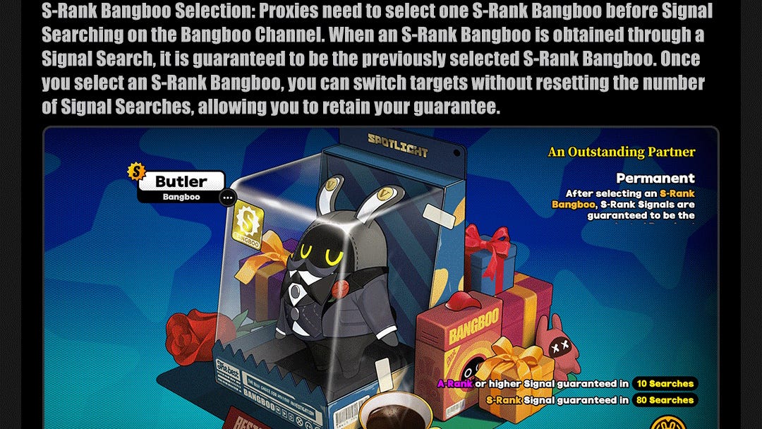 Another big difference worth noting about the Bangboo Banner is that you can pick what S-Rank Bangboo you will pull next. Just select the Bangboo you want to get, and the next time you pull an S-Rank Bangboo, it's gauranteed to be the one you picked.